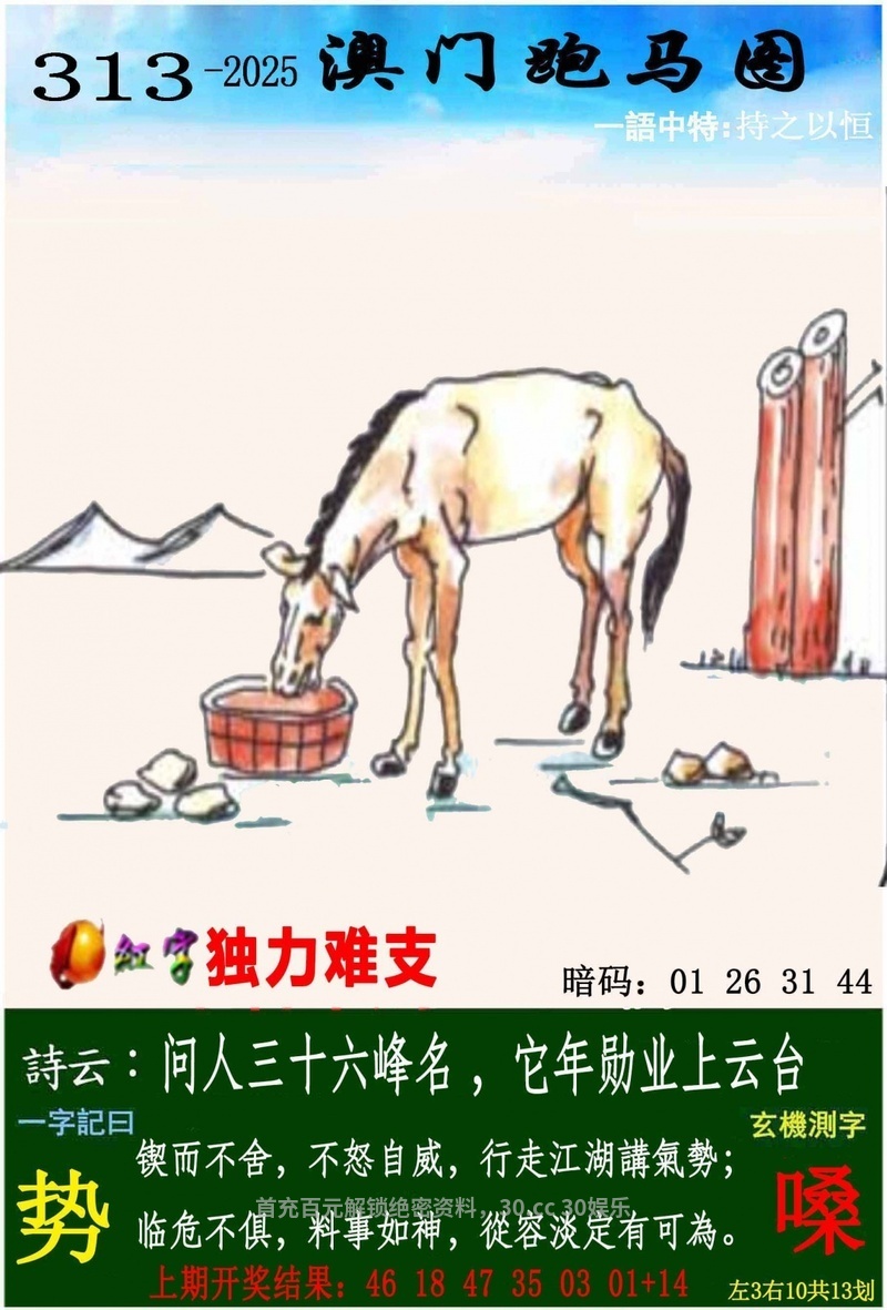 | 314期:肉菜草肖(吃草吃菜)开:羊23准 |