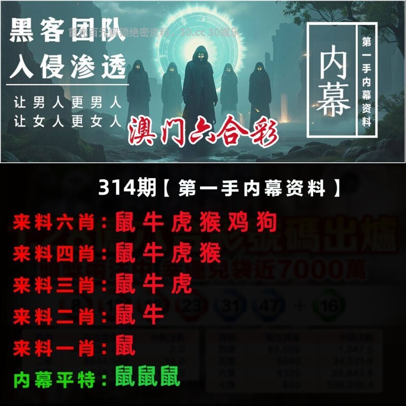 | 314期:复式连肖(马牛龙羊虎鸡猴)中3个 |